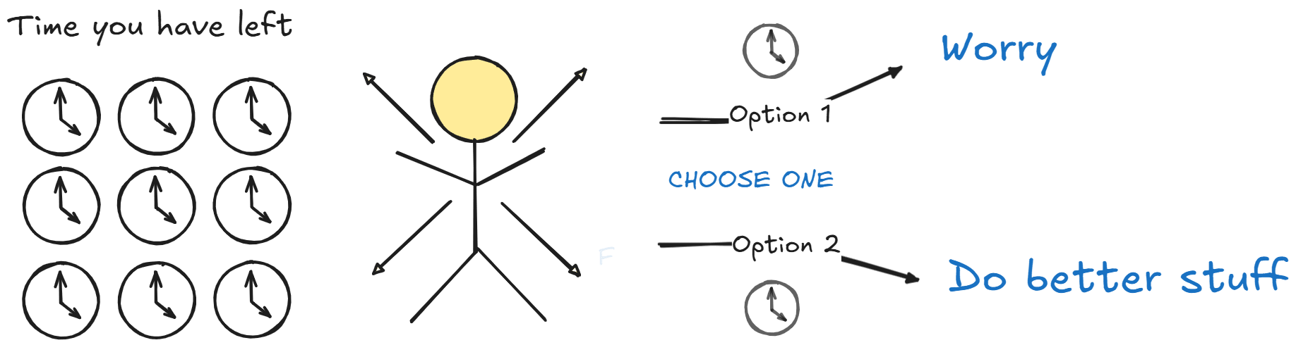 Every minute I spend worrying about someone else’s opinion is time that could have been invested elsewhere. Am I really going to use my finite and constantly depleting time on imaginary problems beyond my control?