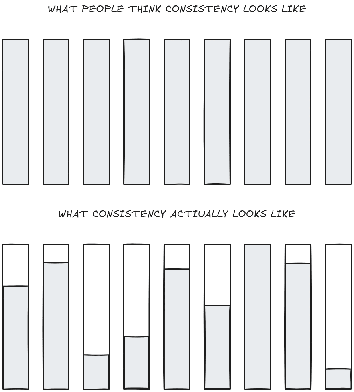 Most people believe consistency means showing up with unwavering discipline – same intensity, same output, regardless of circumstances.